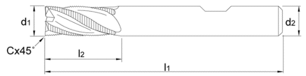 DIN 844-L, centrumsnijdend, cil. schacht met opspanvlak type Weldon (DIN 1835-B), met ronde tand, uit M42-staal