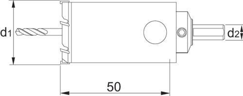 voor snijdiepte tot 50 mm, met vaste houder, voor materiaaldikte tot 15 mm resp. 25 mm bij gebruik op hand- resp. kolomboormachine